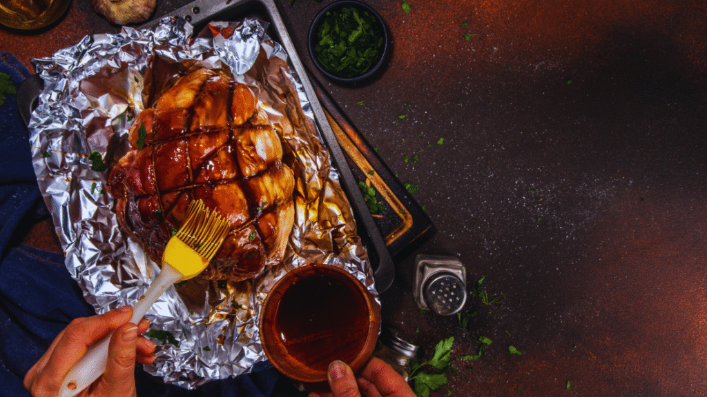 6. Apply glaze during the last 15 minutes. Remove foil, brush on glaze, finish uncovered.
